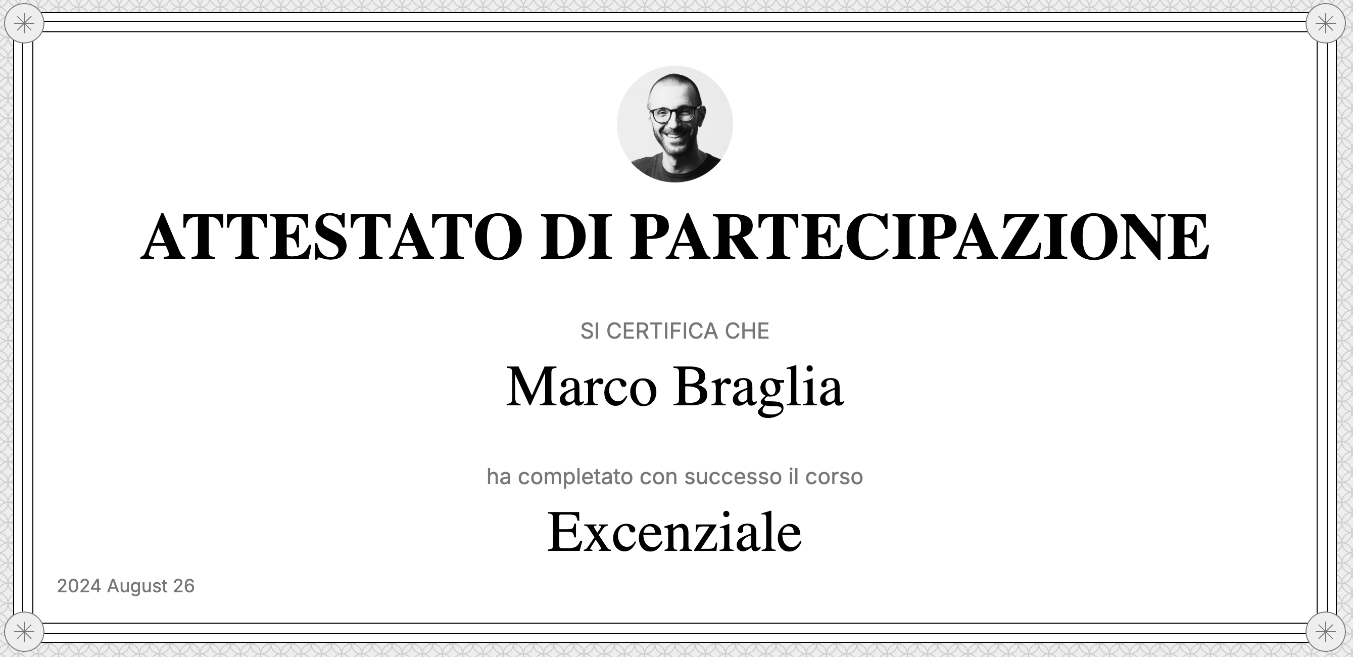 All'interno di Excenziale troverai esattamente la metodologia che ho usato e che continuo ad usare per ottimizzare il mio lavoro e quello dei miei clienti, risolvere problemi complessi e ridurre drasticamente il tempo speso in attività ripetitive e noiose (che odio)!